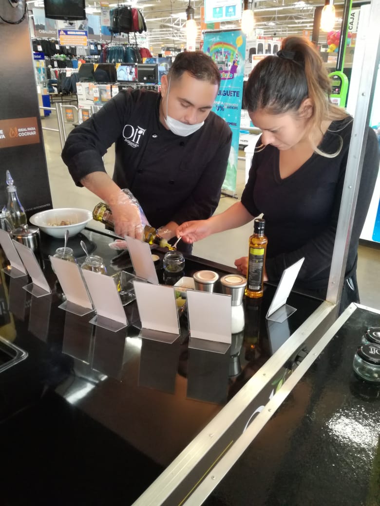 La dinámica consistió en realizar una vinagreta utilizando el aceite con ayuda de un chef profesional con el fin de lograr una interacción cliente-producto y de esta manera generar preferencia y consumo del mismo.