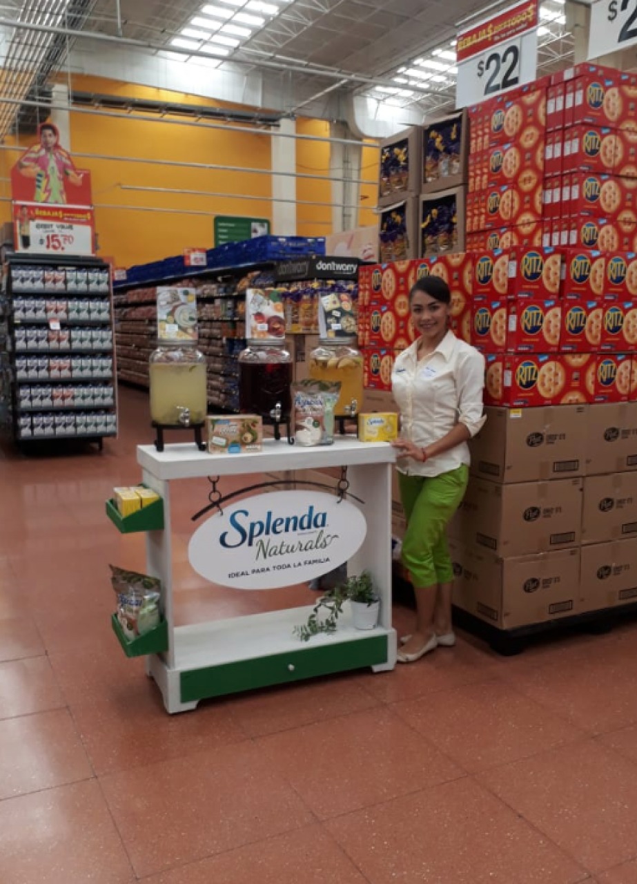 Se realizó una degustación de aguas de sabor, con el fin de dar a conocer el producto e interactuar con la marca. Nuestras Edecanes dieron un speech que comunicaba los beneficios y cualidades de las 3 variedades de Endulzante.